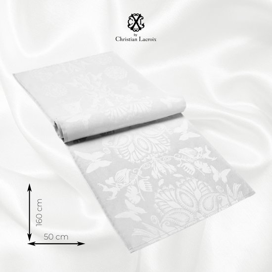 Christian Lacroix Superieur Damast Satijn Tafelloper 100% Gekamd Katoen 220 g/m2 – 50 x 160 cm – Wit