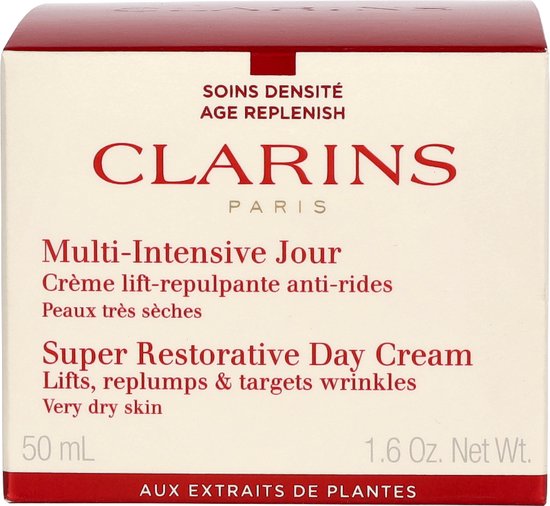 Clarins Age Replenish Super Restorative Day – Haute Exigence Jour. De serie Age Replenish is speciaal ontwikkeld voor de rijpere huid die last heeft van hormonale veranderingen. Hydrateer de droge huid met deze dag crème. De crème werkt op diverse niveaus tegen rimpels, een doffe huid en het ontstaan van pigmentvlekken. Shea en Mango boter geven direct een comfortabel gevoel aan de zeer droge huid. Gebruik: Na de reiniging, gelijkmatig aanbrengen over het gezicht.