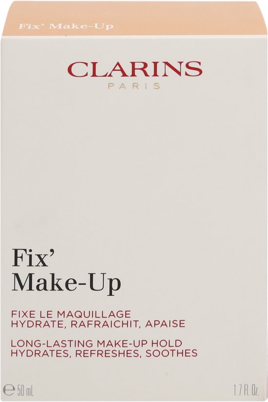 Fix’ Make-up van Clarins is een verfrissende, luchtige setting spray die make-up fixeert. De spray is verrijkt met aloë vera dat de huid kalmeert en hydrateert en met allantoïne. Extracten van rozenwater en grapefruit geven de spray een lichte, verkwikkende geur. Geformuleerd met het Anti-pollution complex van Clarins zodat de huid beschermt is tegen vervuilende invloeden van buitenaf. Voor een langdurige make-up look, die de hele dag goed blijft zitten.