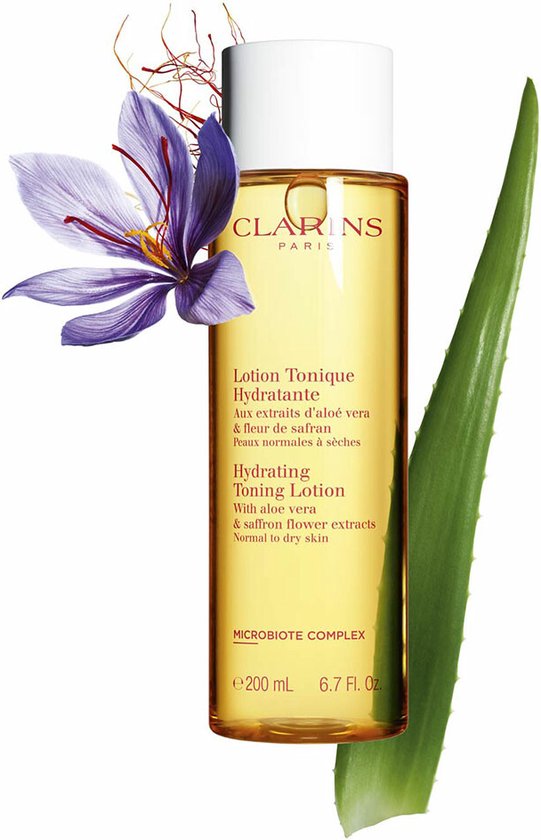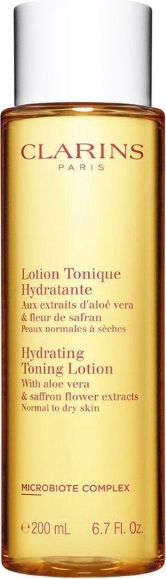 Clarins Hydrating Toning Lotion is een verfrissende gezichtslotion die de huid hydrateert en kalmeert na het reinigen. De formule is verrijkt met aloë vera en olijfextracten, die de huid intensief hydrateren en verzachten. De lotion verwijdert de laatste restjes onzuiverheden en bereidt de huid voor op de volgende verzorgingsstappen.
