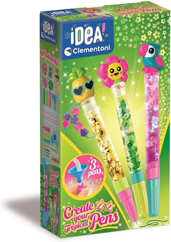 <h3>Zelf glitterpennen maken</h3> <p>Clementoni iDea’s glitterpennen pakket laat je kind zijn of haar unieke eigen pennen ontwerpen. Het creatieve bloed stroomt terwijl ze fluffy pompons, glitters en zomerse personages gebruiken om echte meesterwerkjes te maken. Het knutselpakket is voor meisjes of jongens en bevat materiaal voor 3 pennen, die steeds opnieuw in en uit elkaar kunnen worden gehaald voor eindeloze creaties. Na het knutselen kunnen de makers met hun eigen pennen schrijven, tekenen of notities maken.</p> <p>De werkbank vol accessoires, samen met de uitgebreide set instrumenten, maakt het creëren van kleurrijke pennen een feest vol vrolijke resultaten. Stimuleer de creativiteit van je kind en geniet van alle waardevolle knutselmomenten.</p> <p><strong>Het pennenstudio knutselpakket op een rijtje:</strong></p> <ul> <li>Materiaal voor 3 pennen</li> <li>Geschikt om te vullen met water en glitters</li> <li>Groen-, blauw-, zwart- en blauwschrijvend</li> <li>Kleurrijke kralen</li> <li>Plastic zomerse personages voor op de pen</li> <li>Geschikt voor kinderen vanaf 6 jaar</li> </ul> <p><strong>Het speelgoed van Clementoni</strong><br />Clementoni is ontstaan met het doel om kinderen op een leuke manier te laten leren. Spelen is de taal van het kind en Clementoni begrijpt die als geen ander. Clementoni heeft passend en leerzaam speelgoed voor kinderen in verschillende leeftijdsfases en is al jaren toonaangevend als het aankomt op educatief speelgoed.</p>