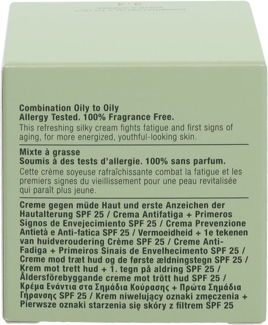 Verfrissende en zijdezachte crA me met SPF25 met een direct verkwikkende werking die de huid de hele dag laat stralen zonder tekenen van vermoeidheid Zorgt voor een jonger uitziende huid en beschermt tegen invloeden van buitenaf Olievrij Geschikt voor de vette en gecombineerde huid Gebruik s Ochtends aanbrengen op een schone huid