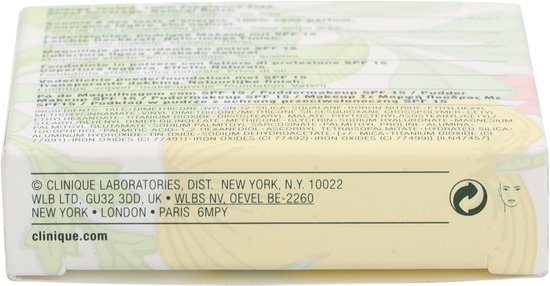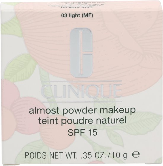 De Almost Powder Make-Up SPF 15 is een compacte poedermake-up die voor een natuurlijke uitstraling zorgt met zonbescherming. De kleur blijft de hele dag mooi. Door de vetvrije samenstelling van Clinique ontstaat er ook geen glans, raken de poriën niet verstopt en wordt de vochtbarrière onderhouden (dankzij de verzorgende ingrediënten ). Almost Powder Make-Up SPF 15 heeft een unieke zijdeachtige textuur en is qua dekking opbouwbaar en de finish is niet krijtachtig. 100% Parfumvrij. Vetvrij. Op allergie getest. Geschikt voor huidtypes 2, 3 & 4, gemengde droge tot zeer vette huid.