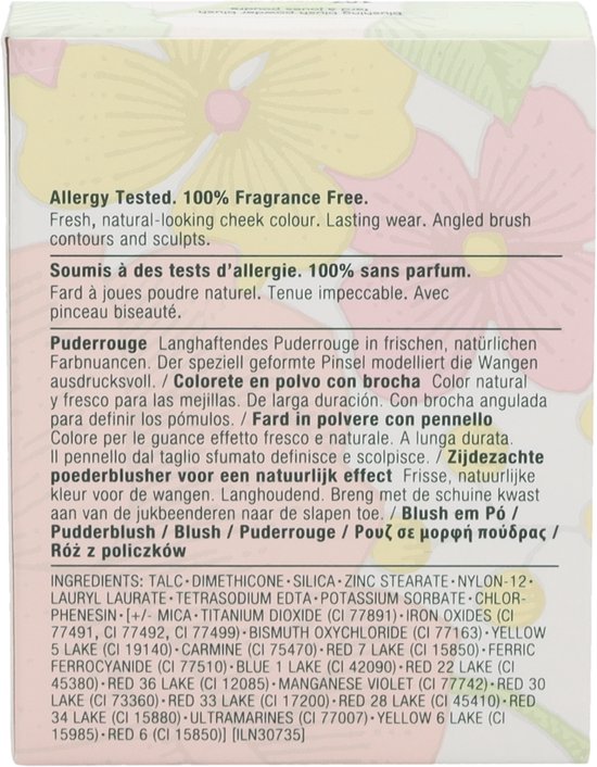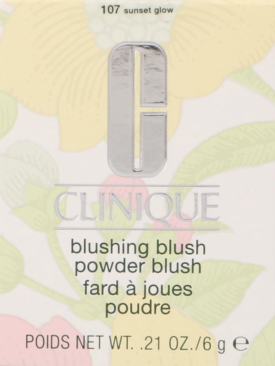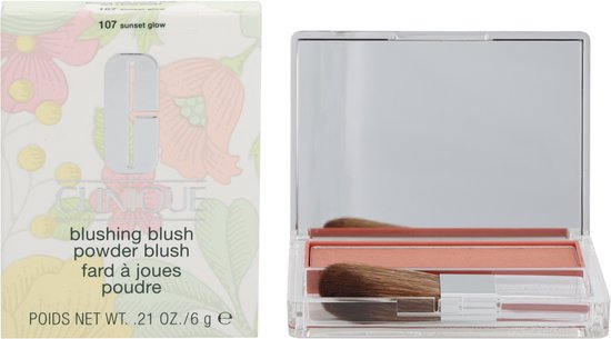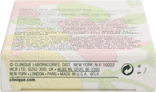Clinique’s zijdezachte formule van Blushing Blush Powder Blush strijkt moeiteloos over de jukbeenderen, voor een natuurlijke uitstraling. De frisse, fijngemalen kleur bouwt prachtig op en blendt mooi voor de gewenste intensiteit, tevens is het een langhoudende en kleurvaste rouge, met een handige kwast. 100% Parfumvrij. Vetvrij. Op allergie getest. Geschikt voor alle huidtypes.