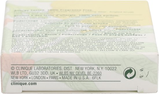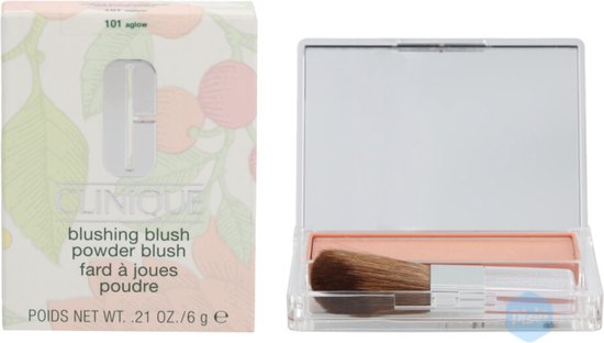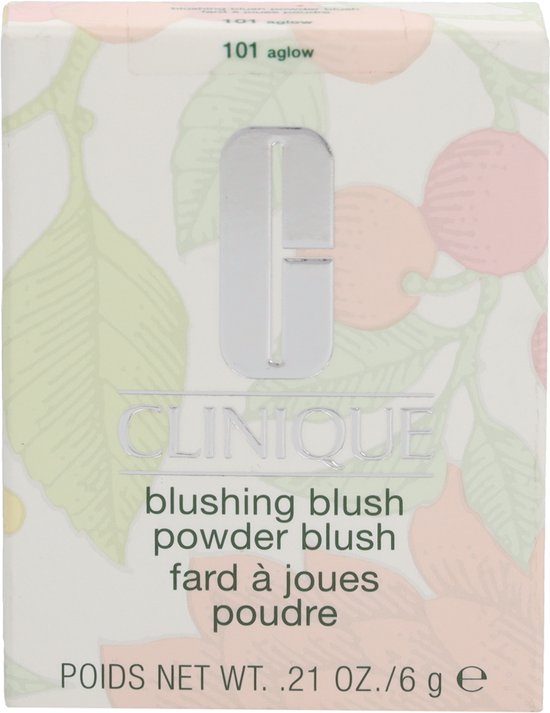 Clinique Foundation Blushing Blush Powder Blush Deze zijdezachte blush strijkt moeiteloos over de jukbeenderen voor een natuurlijk uitstraling De frisse fijngemalen kleur bouwt prachtig op en blendt mooi voor de gewenste intensiteit bovendien is het een langshoudende en kleurvaste blush De blush is 100 parfumvrij vetvrij getest op allergie en geschikt voor alle huidtypen Kleur Aglow