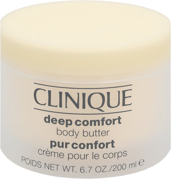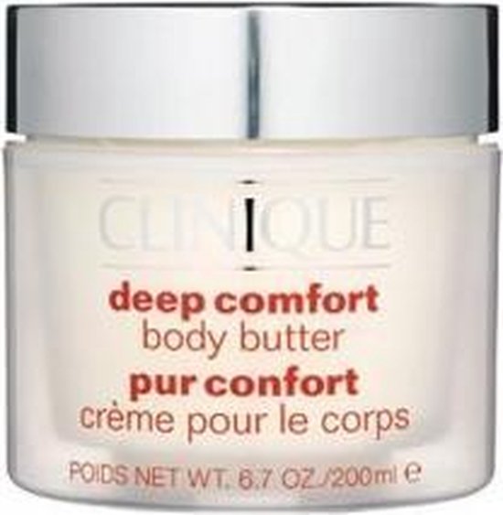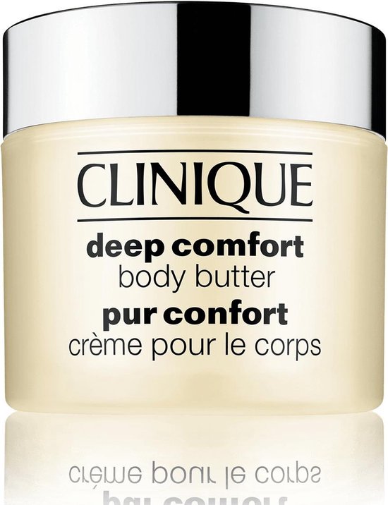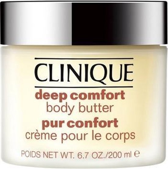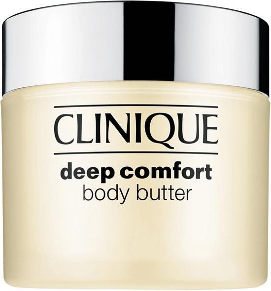 Clinique Body Deep Comfort Body Butter Deze luxueuze zachte body butter is ontwikkeld om een eind te maken aan de droge huid Deze crA me met vitamine E en anti irriterende bestanddelen trekt direct in de huid van de ellebogen knieA