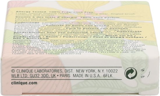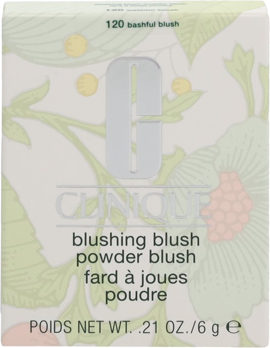 Clinique Foundation Blushing Blush Powder Blush Deze zijdezachte blush strijkt moeiteloos over de jukbeenderen voor een natuurlijk uitstraling De frisse fijngemalen kleur bouwt prachtig op en blendt mooi voor de gewenste intensiteit bovendien is het een langshoudende en kleurvaste blush De blush is 100 parfumvrij vetvrij getest op allergie en geschikt voor alle huidtypen Kleur Aglow