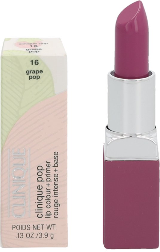 Clinique Lips Clinique Pop Lip Colour Primer Deze liptisck bevat sheaboter en murumuruboter deze mix zorgt ervoor dat de vochtbalans van de lippen op peil wordt gehouden De lippen worden volledig bedekt en zien er gladder en voller uit De kleur blijft 8 uur lang zitten De lipstick is 100 parfumvrij en getest op allergie Kleur Grape pop