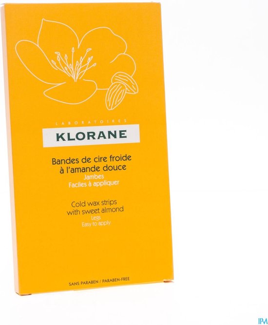 Klorane Bandes de Cire Froide Koudewasstrips Wasstrips met zoete amandel om de benen te ontahren De strips hechten perfect aan de haartjes en verwijderen ze voor langere tijd