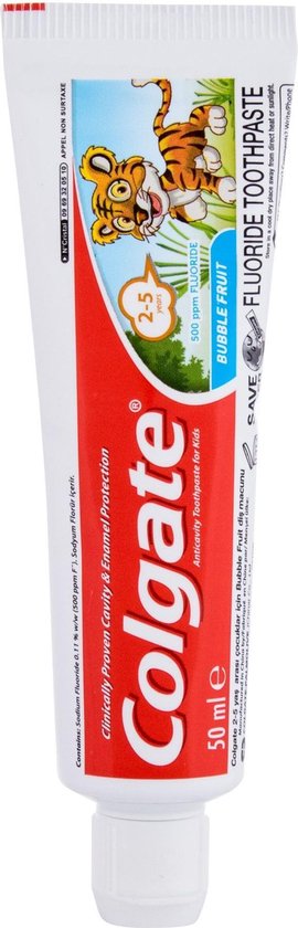 Inhoud: Colgate – kindertandpasta Bubble Fruit 2-5 jaar 50ml
