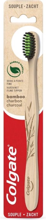 Poets je tanden schoon met de Colgate Bamboo Charcoal tandenborstel. Deze verantwoordelijke tandenborstel met dunne borstelharen reinigt je mond en is ook nog een goed voor het milieu. De tandborstel is gmaakt van 100% natuurlijk biologisch afbreekbaar bamboo en de kartonnen verpakking is recyclebaar.
