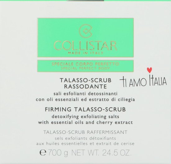 Collistar Firming Talasso-Scrub Bodyscrub is een Mediterrane sensatie. De bodyscrub bevat regenererende ex foliërende zeezouten, kersenextract, essentiële oliën en vitamine E. De voordelen van thalassotherapie worden gecombineerd met de ontgiftende, verstevigende effecten va kers. Het is een verwennende behandeling die de huid verstevigt. Je krijgt onmiddellijk een ongelofelijke zachte, gladde en stralende huid. Dat wil toch iedereen?