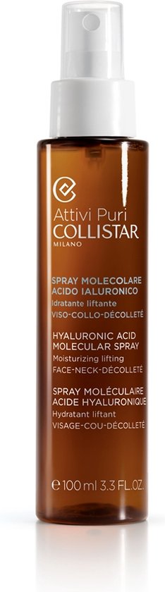 De Pure Actives Hyaluronic Acid Spray van Collistar is perfect te gebruiken op elk moment van de dag, als onderdeel van de dagelijkse beauty routine of over de make-up gedurende de dag voor een oppepper. De fijne spray voorziet de huid van een ultra dun filmlaagje met hyaluronzuur. De huid voelt direct gehydrateerd en comfortabel. Zonder parfum, alcohol of kleurstoffen.