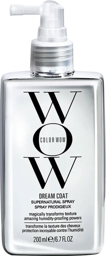 Color Wow Dream Coat Supernatural Spray is een razend populair product dat het haar prachtig glanzend en glad maakt zonder pluis. Deze spray is ideaal voor haar dat is beschadigd door kleuring. Het innovatieve merk Color Wow maakt gebruikt van nieuwe technologieën waarmee een laagje rond het haar gelegd wordt om het haar de hele dag glad en pluisvrij te houden. Deze laag beschermt het haar tegen vochtige weersomstandigheden maar zal het haar niet verzwaren. Dit alles zorgt voor een prachtig effect dat tot wel 3 wasbeurten zichtbaar blijft. Color Wow is vrij van sulfaten, parabenen en siliconen. Ook is het merk 100% vegan en dierproefvrij. Het bevat geen giftige bestanddelen.