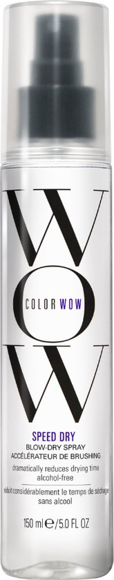 De Color Wow Speed Dry Blow Dry Spray is een spray die het haar beschermt tegen de hitte van de föhn en tegelijkertijd het föhnproces versnelt. De Speed Dry Blow Dry Spray is een must-have voor geverfd haar. Door de spray ben je veel minder tijd kwijt met het drogen van je haar, de spray versnelt het drogingsproces tot wel 30%. Bij gebruik van deze Blow Dry Spray hoef je je haar minder lang bloot te stellen aan de hitte van de föhn wat zorgt voor minder beschadiging. De haarkleur blijft langer behouden en het haar krijgt een mooie glans. De Speed Dry Blow Dry Spray kent een unieke, alcoholvrije formule die porositeit bestrijdt door het vitale vocht binnen in de cuticula te houden en een gewichtloze beschermende laag te creëren.