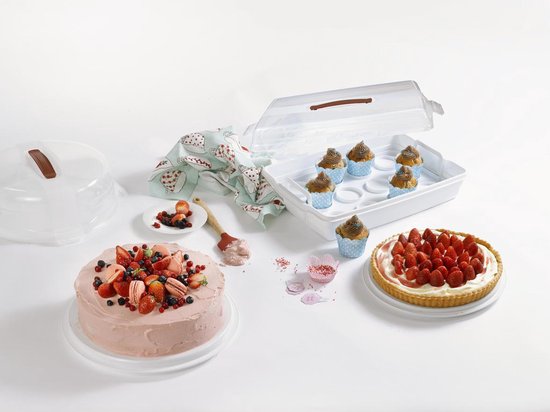 “De Curver quichedoos is onderdeel van de Chef@home range die voorziet in allerlei keukenhulpjes. De quichedoos is mede door zijn eenvoudige en veilige sluitclips erg geschikt voor het bewaren en serveren van hartige taarten en andere baksels, met de handige softgreep, aan de bovenzijde van het product, is het gemakkelijk om het product te verplaatsen. De dubbelzijdige tray is aan de ene zijde te gebruiken voor cupcakes en aan de andere zijde glad, bijvoorbeeld voor brownies of muffins. Belangrijke toevoegingen aan het product zijn te herkennen aan het BPA vrije label en het kenmerk voor voldoen aan de Europese wetgeving voor voedingsmiddelen. Na gebruik is het mogelijk de doos te reinigen in de vaatwasser.