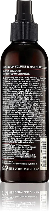 Dapper Dan Sea Salt Spray Deze sea salt spray zorgt voor textuur in het haar en geeft een matte finish Het product kan ook gebruikt worden tijdens het fAPhnen Tevens werkt het product verstevigend Gebruik Sprayen op handdoekdroog haar De haren laten drogen of fAPhnen naar wens