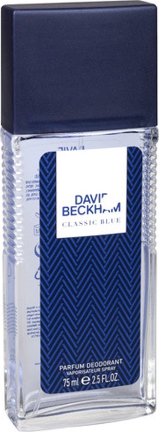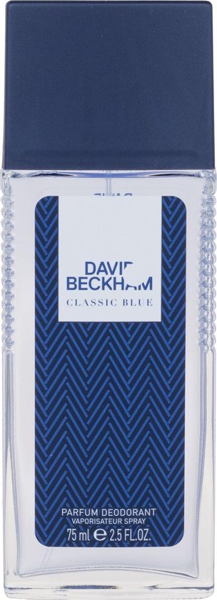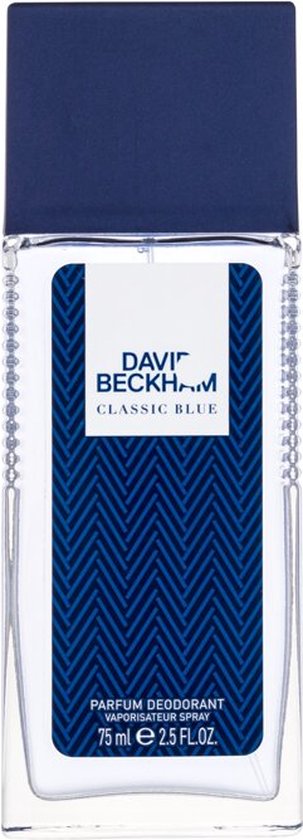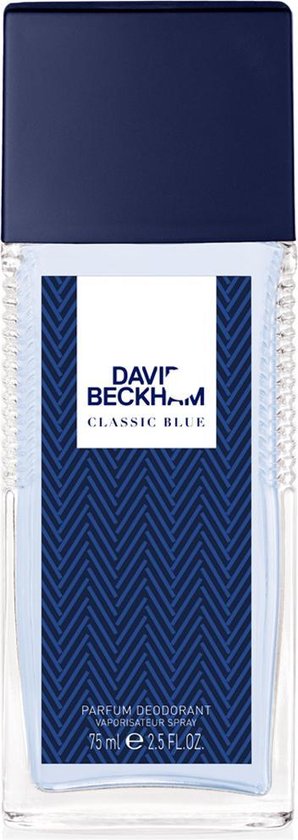 Classic Blue Deodorant Spray van David Beckham maakt de nieuwe Clacic Blue toiletgeur compleet. David Beckham introduceerde de klassieke geur in 2013, gewijd aan mannen met stijl. Nu komt het met een nieuwe geur Classic Blue, die is geïnspireerd op zijn klassieke stijl en elegantie in combinatie met moderne details. David Beckham presenteert deze geur zelf als een moderne interpretatie van een tijdloze klassieke geur. Pan Jean-Christophe Herault staat direct achter de totstandkoming van deze nieuwe editie. De compositie is gedurfder dan de originele klassieke geur. De eerste noten zijn te horen van verlegen akkoorden van ananas-, grapefruit- en viooltjespersen. Het hart bestaat uit geraniums, salie en appels. In de verte – in een dichte bosvoet, ben je bedekt met kasjmier, patchouli en mos. De geur werd geïntroduceerd in 2014