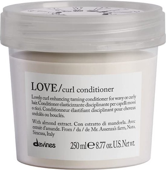 Davines LOVE CURL Conditioner is ontwikkeld om golvend of krullend haar te versterken en onder controle te houden. De formule maakt het haar zacht en licht en geeft elasticiteit en volume zonder het te verzwaren. Deze conditioner is rijk aan eiwitten en vitamine B om elasticiteit en volume te geven. Dit product is verkregen met 100% schone energie. Geen impact, essentiële en recyclebare verpakkingen.