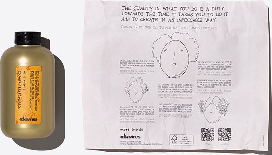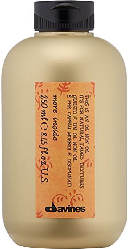 Davines More Inside Oil Non Oil is een ideaal product voor een natuurlijke, verzorgende look. Geeft meer volume, veerkracht en glans aan het haar. Voorkomt kroes en statisch haar.