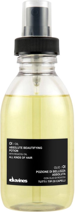 Roucou olie is afkomstig van een plant genaamd Amazonia, ook wel bekend als Annato. Deze olie is 100 maal rijker aan betacaroteen als wortel. Het helpt de structuur van het haar te herstellen en werkt bovendien als een antioxidant en beschermt het haar tegen vrije radicalen. OI OIL Beautifying Potion is een multifunctioneel product aanbevolen voor alle haartypen. Het geeft een buitengewone glans en souplesse aan het haar, garandeert een goede doorkambaarheid en vermindert het pluizen van het haar. Daarnaast beschermt de potion het haar tegen agressieve externe invloeden zonder het haar te verzwaren. Reduceert de droogtijd tijdens het fohnen en laat geen resten achter in het haar.