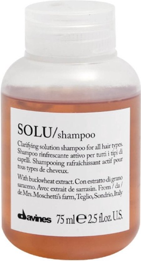 Davines SOLU shampoo is samengesteld om resten van stylingproducten te verwijderen of voor een permanentbehandeling. Het rijke en luchtige schuim maakt het haar extreem schoon. De natuurlijke actieve ingrediënten verfrissen de hoofhuid en het haar. Je haar is zacht en glanzend! Dit product is verkregen met 100% schone energie. Geen impact, essentiële en recyclebare verpakkingen.