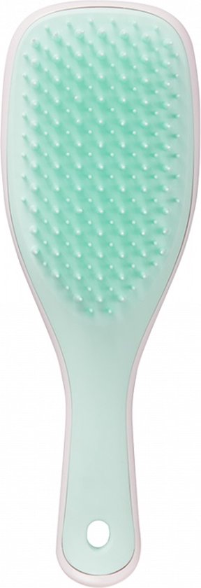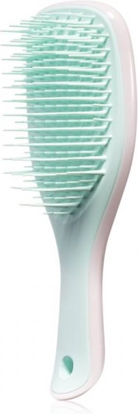 De Wet Detangler borstel is nu klein, super schattig en super handig! Met de Mini versie van de Wet Detangler borstel kun je zowel droog als nat haar pijnloos ontklitten. Dankzij de flexibele tanden, die zich perfect om verward haar wikkelen, zorgt het voor een snelle en zachte ontwarring. Tegelijkertijd beschermt het het haar tegen breken tijdens het kammen.De Wet Detangler Mini is geweldig voor gebruik met kinderen. De flexibele, tweetraps tanden zijn perfect voor het kammen van elk haartype en het kleine formaat maakt het ideaal om mee te nemen onderweg. De borstel heeft bovendien een handig gat aan het handvat om hem in je handtas te klemmen, zodat je hem altijd bij je hebt!