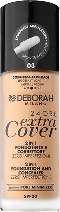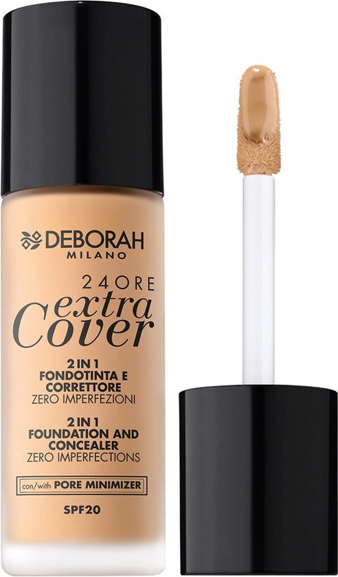 De 24Ore Extra Cover Foundation van Deborah Milano geeft een hoge, langhoudende dekking voor een egale huid gedurende de gehele dag.