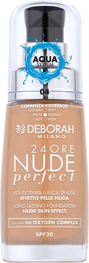De Deborah Milano 24Ore Nude Perfect Foundation is een super lichte, hydraterende foundation die een effectieve verzorging voor de huid combineert met een medium, opbouwbare dekking. De formule is verrijkt met het unieke AQUA SYSTEM voor een gehydrateerde huid gedurende de dag en het DH OXYGEN COMPLEX waardoor deze foundation de huid laat ademen.