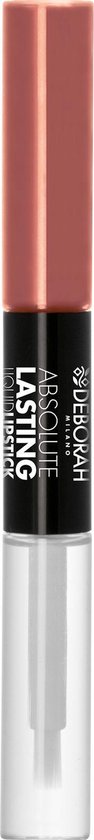 De Deborah Milano Absolute Lasting Liquid Lipstick is een liquid longlasting DUO lipstick die niet afgeeft. Het combineert een super gepigmenteerde kleur met maximale comfort en een schitterende glans. Deze DUO lipstick is gemakkelijk aan te brengen en droogt uitermate snel. Verder is de Absolute Lasting Liquid Lipstick dermatologisch getest.