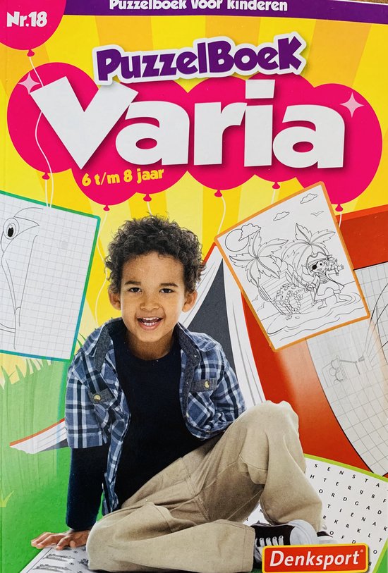 Denksport – Nr.18 – Varia voor kinderen 6-8 jaar – Denksport junior – Puzzelboek – Kleurboek – Puzzels kinderen – Puzzelboek kinderen – Puzzel – Puzzelboekje – Denksport puzzelboekjes – Woordzoeker
