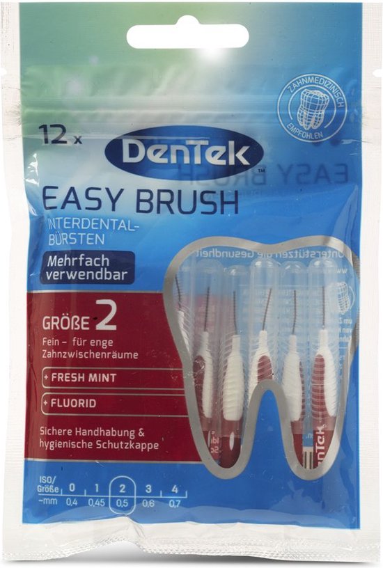 Dentek Easy brush – interdentale ragers – eco friendly – 12 stuks – ISO 2 maat 0,5 mm