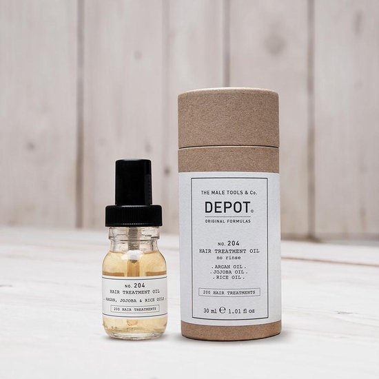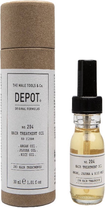 Depot Hair Treatment Oil is een leave-in oliebehandeling die speciaal voor mannen is ontwikkeld om pluis en statische elektriciteit tegen te gaan in het haar. De oliebehandeling geeft glans aan dof haar en heeft een sluitende en beschermende werking op de schubbenlaag. Het treatment zorgt er ook voor dat het haar ontwart en het maakt het haar handelbaar en glanzend.