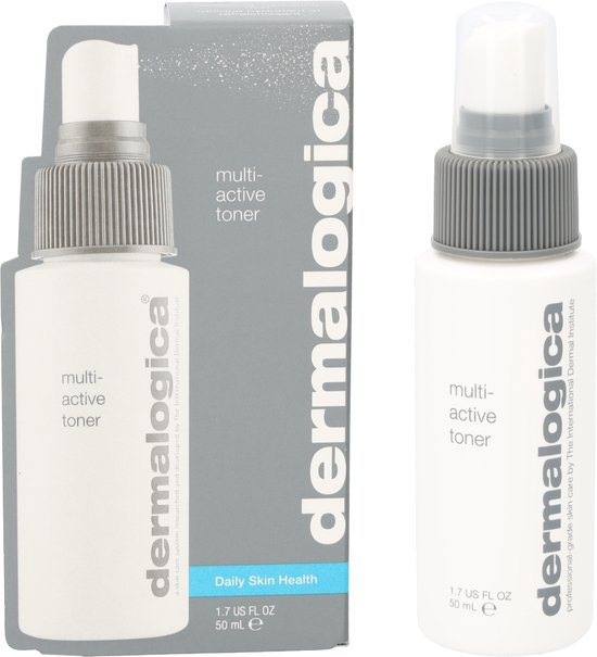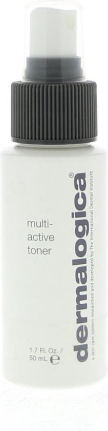 Dermalogica Cleansers Multi Active Toner Lotion Deze verfrissende spray zorgt voor optimale hydratatie van de huid Humectanten zoals AloA Vera en Komkommer verzachten de huid en Citroenkruid en Arnica brengen de huid in topconditie Deze spray mag gedurende de hele dag gebruikt worden op momenten dat hydratatie enof verfrissing gewenst is Vrij van synthetische geur en kleurstoffen Gebruik Spray direct over het hele gezicht en de hals na het uitvoeren van de dubbele reinigingsroutine van Dermalogica Houdt hierbij de ogen gesloten Vervolg met de geadviseerde Dermalogica Moisturizer