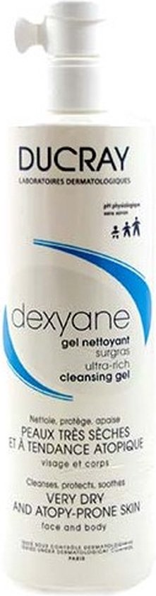 Ducray Dexyane Gel Nettoyant Surgras Geschikt voor de zeer droge huid met neiging tot atopie Deze over vette reinigingsgel beschermt tegen uitdroging en verzacht irritatie Kan gebruikt worden bij baby s vanaf 3 maanden kinderen en volwassenen Zonder parabenen zeep en parfum Gebruik Aanbrengen op natte gelaats enof lichaamshuid laten opschuimen en afspoelen vervolgens voorzichtig droogdeppen