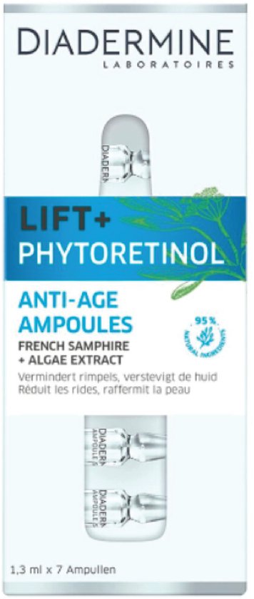 <p> Vertrouw op de kruidige werking van Diadermine Lift+ Phytoretinol Anti-age Ampullen. Natuurlijke stoffen zoals zeevenkel en algenextract zijn net zo effectief als retinol, maar zonder negatieve bijwerkingen zoals huidirritatie. </p>