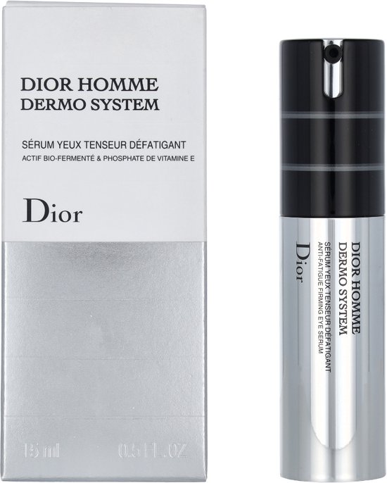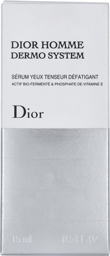 Het verstevigende vermoeidheidswerende oogserum Dior Homme Dermo System smelt onmiddellijk op de huid zonder glimmend laagje na te laten. Het serum heeft een herstructurerend en opspannend effect op de oogcontouren: de weefsels worden versterkt, de oogleden zijn strakker en de ogen lijken groter. Donkere kringen en zwellingen worden weggewerkt door het Cafexyl™-complex dat de pigmenten die tussenkomen in de vorming van donkere kringen neutraliseert. De oogcontouren zijn onmiddellijk strakker en de donkere kringen zijn helderder. Iedere dag opnieuw wordt de blik stralender en verminderen de zwellingen.
