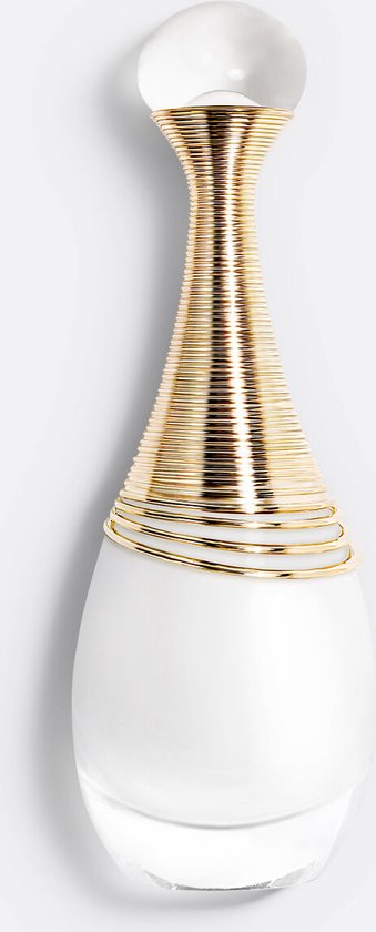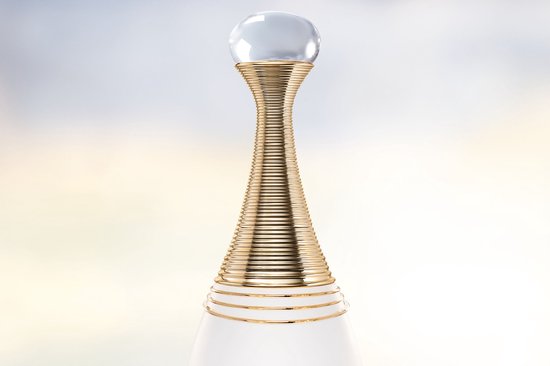 De flacon van dit parfum met een unieke formule voor Dior is mat opaalachtig wit. Het parfumgebaar is ook vernieuwd: J’adore Parfum d’eau wordt weelderig als een wolk verstoven om de huid te omhullen.