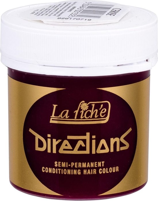 Directions Colours van La Riche. Direction Colours is een semi-permanente haarkleuring in pastavorm met de meest gekke kleuren. Directions Colours kan worden toegepast op natuurlijk haar, maar het beste resultaat bereik je als het haar geblondeerd is. Het geeft geen dekking op wit of grijs haar. Directions Colours is vrij van ammoniak en bevat geen waterstofperoxide.Directions Colours verkrijgbaar in 34 kleuren ! Een haarkleur bereiken van het brede scala aan waanzinnige en levendige kleuren van Directions Colours, en alle kleuren kunnen met elkaar gemengd worden om een eigen unieke tint te maken. Directions Colours producten van La Riche zijn niet getest op dieren. Gebruik: Was het haar eerst met een zure pH evenwichtige shampoo. De shampoo zal het haar de correcte zure balans geven, om zo met de La Riche Directions kleurcrème het beste resultaat te bereiken. Kam de La Riche Directions kleurcrème door het haar tot het emulgeert, zo kan het kleurpigment van de La Riche Directions schuimend het haar binnendringen. Lichtere lokken meerde malen doorkammen. De inwerktijd is tussen de 15 en 30 minuten. Door de warmte van een plastic muts bereik je met de haarkleuring van La Riche Directions een nog beter resultaat.Spoel het haar grondig uit met warm water totdat alle residu kleurcrème is verwijderd. Alle kleuren van la Riche Directions kunnen onderling worden gemengd, om zo je eigen unieke kleur te creëren. Als er meer dan één kleur wordt toegepast moet het haar afzonderlijk worden gewassen en gedroogd. Het haar moet met de grootste zorg worden behandeld, wanneer gebleekt haar gedeeltelijk word gekleurd.