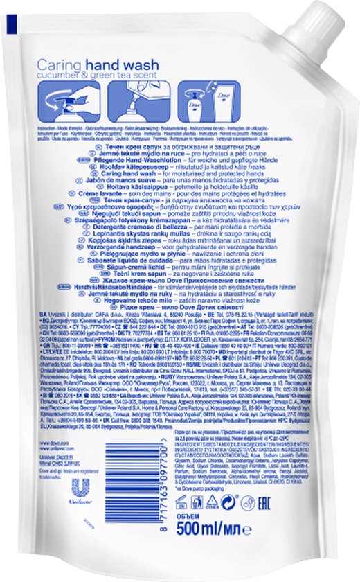 Dove 8717163097700. Bedoeld voor: Handen, Soort: Vloeibare zeep, Constitutief bestanddeel: Komkommer. Inhoud: 500 ml. Aantal per verpakking: 1 stuk(s)