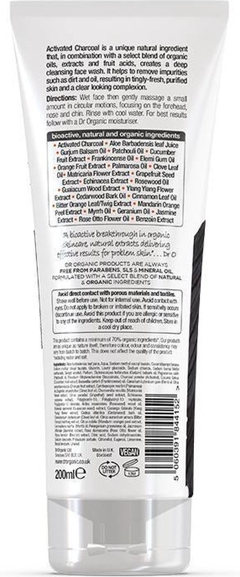 Dr. Organic Carbón Limpiador Facial 200 Ml