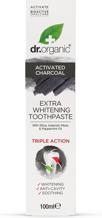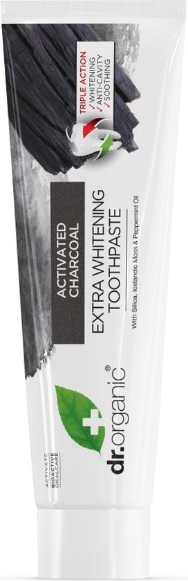Dr Organic Activated Charcoal Extra Whitening Toothpaste is de tandpasta voor mensen die op zoek zijn naar een innovatieve en dagelijkse oplossing voor wittere tanden. De zwarte houtskool zorgt in combinatie met natuurlijke plantenextracten voor een effectief bleek effect van de tanden zonder de tanden of het tandglazuur aan te tasten. De tandpasta met fluoride gaat tandplak tegen en beschermt tegen gaatjes.Dr Organic Activated Charcoal Extra Whitening ToothpasteMet houtskool voor wittere tandenBeschermt tegen plak en gaatjesMet natuurlijke plantenextractenMet fluorideVegan