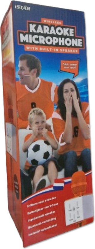 Deze karaoke microfoon breng elk feestje op gang! Hij beschikt over een draadloze speaker met hoog volume. Tegelijkertijd kan er gebruik gemaakt worden van de microfoon. De karaoke microfoon is eenvoudig te koppelen met alle smartphones en tablets met de bluetooth verbinding. Met 5 filters, bass, treble, muziek volume, microfoon volume en echo. geschikt voor iOS en Android. Inclusief micro-USB oplaadkabel. Batterijduur van 2 tot 3 uur. Twee 3 Watt luidsprekers voor een hoog volume.