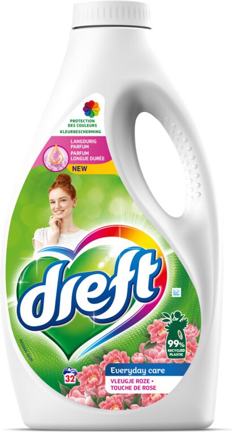 Dreft Vloeibaar wasmiddel Vleugje Roze 32 Wasbeurten 1,6 liter