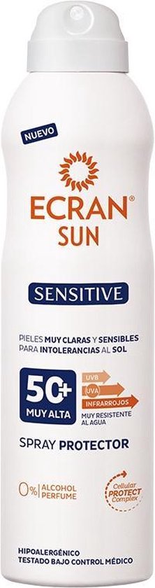 Wil je uitpakken met je spectaculaire kleurtje en terzelfdertijd je huid verzorgen? Dan is Zon Protector Spray Sensitive Ecran SPF 50+ (250 ml) precies wat jij nodig hebt! Nu kun je genieten van de Ecran zonnebrandcrème en andere tanning lotions of zonne-oliën van 100% originele merken.
