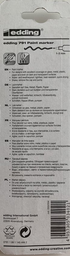 - De inkt van de lakmarker is lichtecht, sneldrogend en watervast