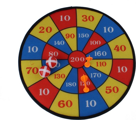 Kun jij de meeste punten scoren op dit dartbord van Eddy Toys? Verzamel je vriendjes en probeer het uit! Door het klittenband blijven de balletjes en de pijltjes aan het bord hangen, zo kunnen kinderen zichzelf niet bezeren.