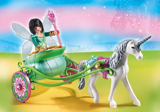 Eenhoornkoets met Vlinderfee / Fée Papillon avec calèche et licorne