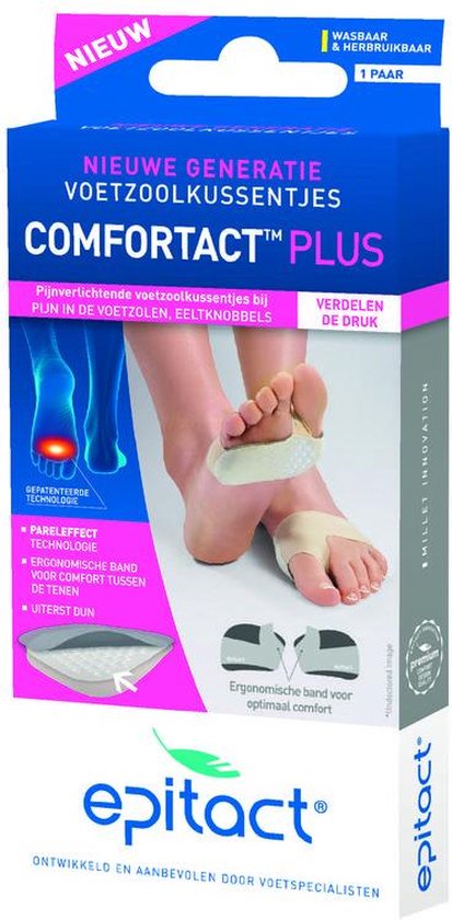 Epitact Comfortact plus Voetzoolkussentjes helpen bij pijn in de voetzolen en eeltknobbels. De voetzoolkussentjes werken direct pijnverlichtend en hebben een lange levensduur.