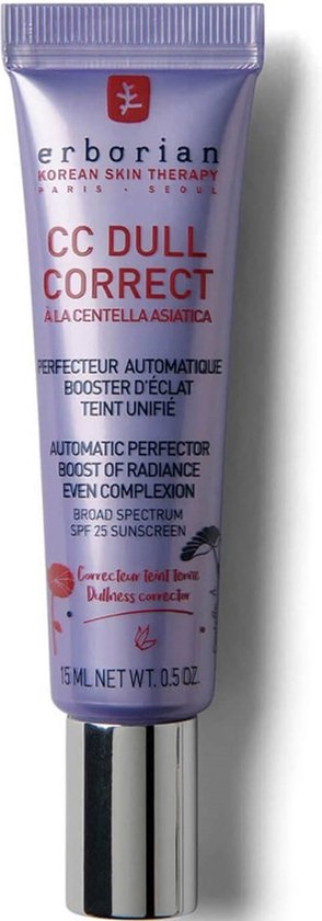 Je huid verbeterd, opgefrist en gecorrigeert! Het is nu mogelijk met een eenvoudige stap met de Erborian CC Dull Correct! Een slimme mix van violette pigmenten is ingekapseld in de CC Dull Correct, die direct je doffe huid te corrigeren. Microparels reflecteren het licht en doen de teint herleven en geven die ‘California glow’. Verrijkt met een extract van zoethout, bekend om zijn verhelderende en antioxiderende eigenschappen en verstevigende Centella Asiatica, werkt CC Dull Correct om de huid te kalmeren, te hydrateren en te verbeteren. Je huid ziet er fris uit en is zichtbaar mooier en stralend!